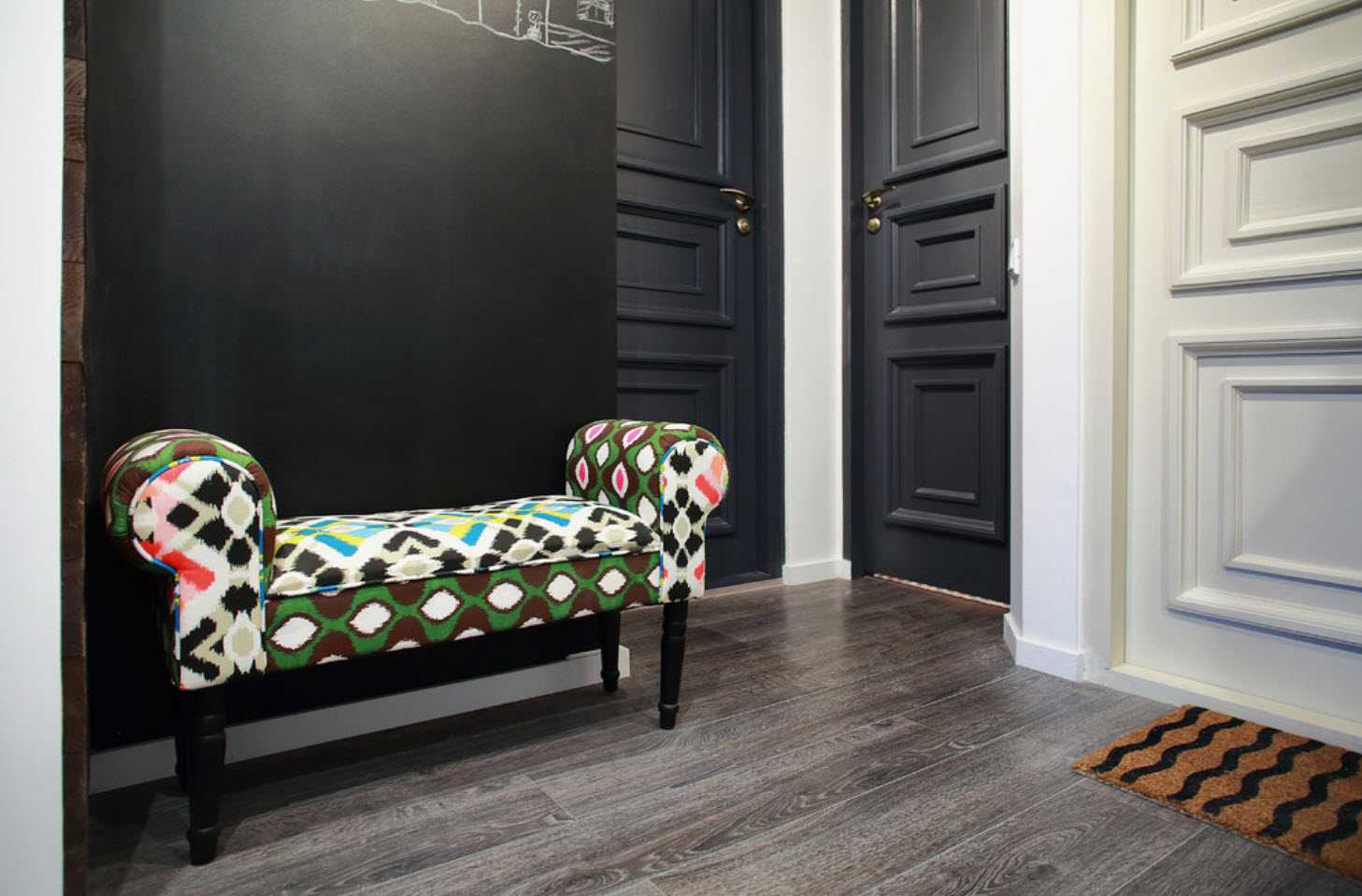 Учти, что любая объемная отделка занимает ценные сантиметры маленькой прихожей. Это касается плитки, декоративного камня, фактурной штукатурки и деревянных панелей. Поэтому если стены ровные, проще изначально обойтись моющейся краской или обоями.