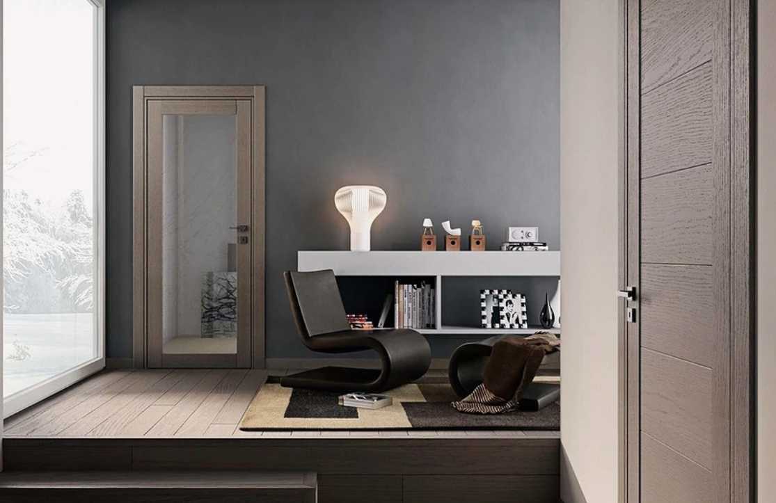 Здесь существует гораздо больше дизайнерских решений. Двери могут быть одного цвета со стеной, визуально сливаясь с ней, или даже кардинально отличаться и выделяться контрастным цветом. Плинтусом можно продлить линию обналички и визуально соединить все межкомнатные двери между собой.