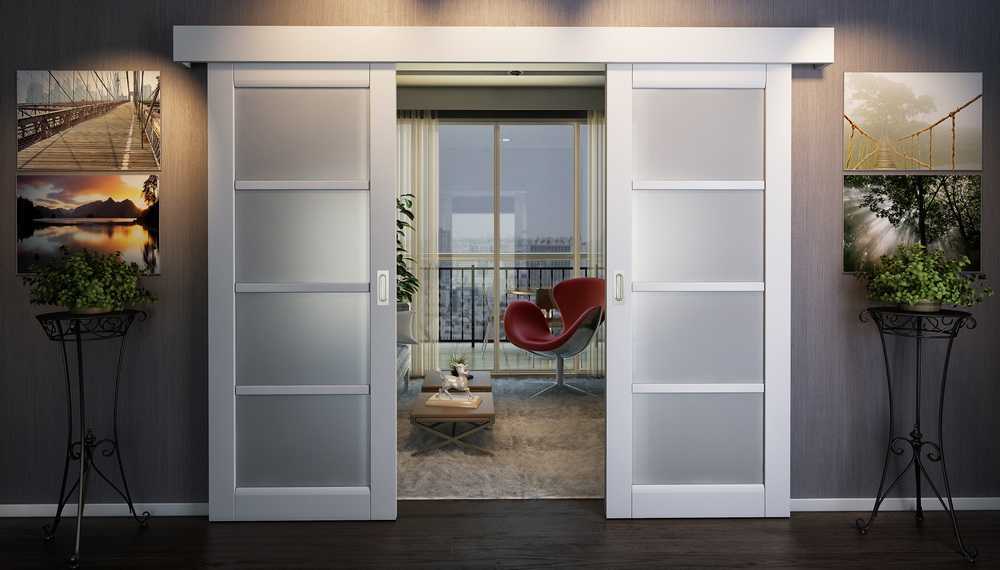 Менее популярными межкомнатными дверьми являются раздвижные, которые можно «прятать» в стене, либо же такие двери перемещаются вдоль стены. Такие конструкции эффективнее применять в небольших помещениях. Раздвижные двери изготавливают из стеклокомпозита или из дерева.