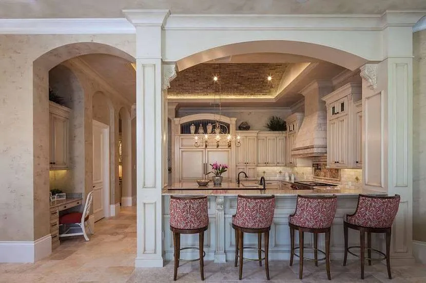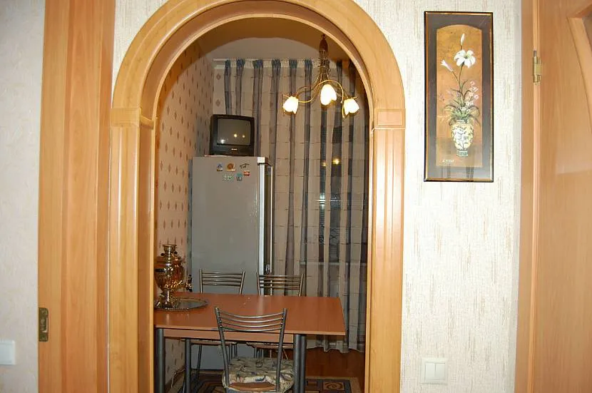 Прежде всего, обратите внимание на стилистику помещения. Например, классическая кухня хорошо сочетается с аркой из дерева или гипсокартона