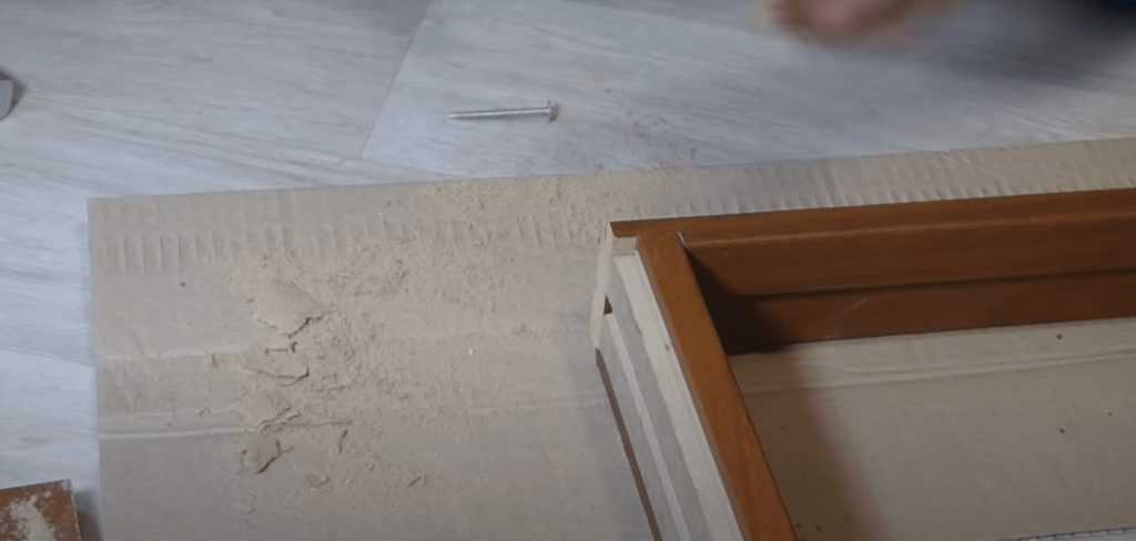 Если элемент коробки был изготовлен на заводе с учётом предстоящей стыковки, он может быть снабжён специальным шипом на каждом торце перемычки. Эта конструктивная деталь при сборке рамы точно подходит к пазу в вертикальной стойки, из-за чего получается ровное и надёжное соединение. Для фиксации положения ортогональных стоек и перемычки, с внешней стороны рамки устраиваются несколько саморезов, которые будут надёжно скрыты после монтажа.