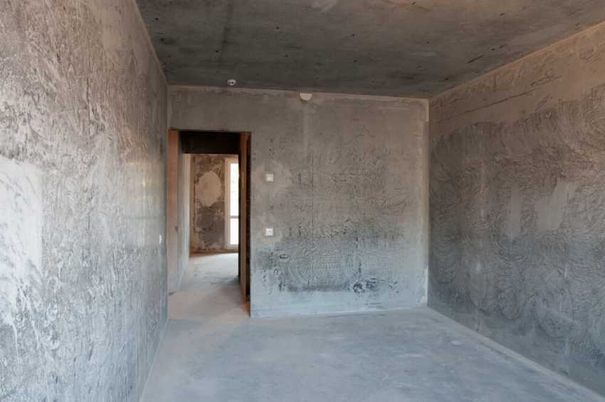 Первый вариант представляет собой габаритное помещение с голыми несущими стенами без отделки, выполненными из кирпича, бетона или строительных блоков. Пол представлен в виде бетонной плиты без стяжки, потолок – нижней поверхностью плиты без отделки. В таких квартирах предусмотрено наличие дешевой и ненадежной входной двери, окон с двойным стеклопакетом. В квартиру введено электричество и установлен небольшой щит с одним автоматом. Выполнена разводка отопления с установкой батарей и запорно-регулирующей арматурой. Это единственная коммуникация, которая готова к эксплуатации.