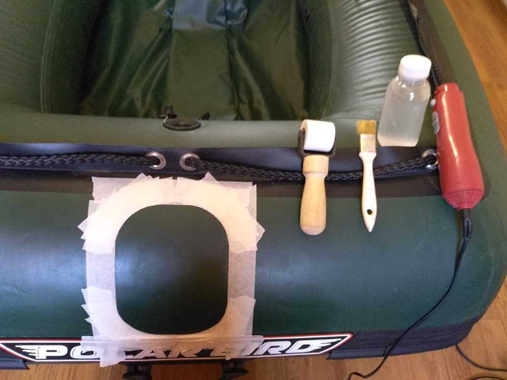 Проведя тщательный осмотр надувной лодки из ПВХ, и определив проблемный участок, переходим к подготовке соответствующих для ремонта принадлежностей: