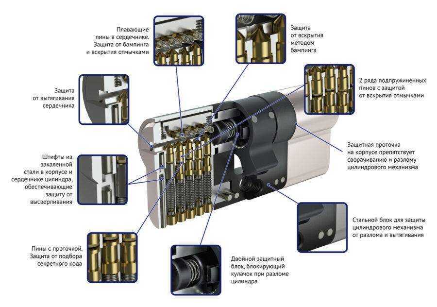 Магнитные и реечные не требуют поворота ключа, а, следовательно, с ними вы точно не столкнулись. Остается разобраться с сувальдными и цилиндровыми секретными механизмами.
