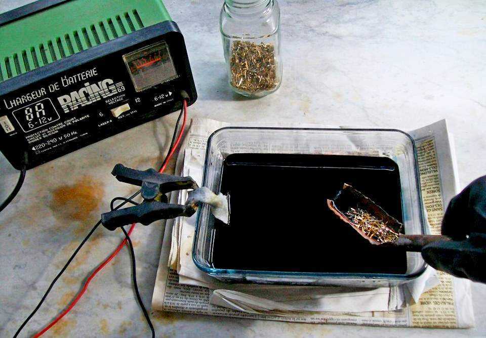 Следите за плотностью тока: её следует установить на несколько минут на отметке 25-30 А на квадратный дм, а затем увеличить до 20 на следующих десять минут. Затем обрабатываемый предмет надо достать, промыть, просушить, отполировать до блеска.
