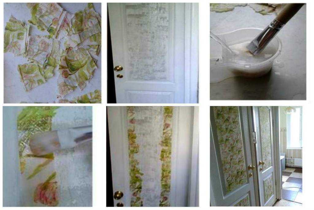 Аналогично обоям можно задекорировать дверное полотнище с помощью ткани.Тканевое покрытие выглядит очень привлекательно. Ткань выбирают непрозрачную и достаточно плотную.