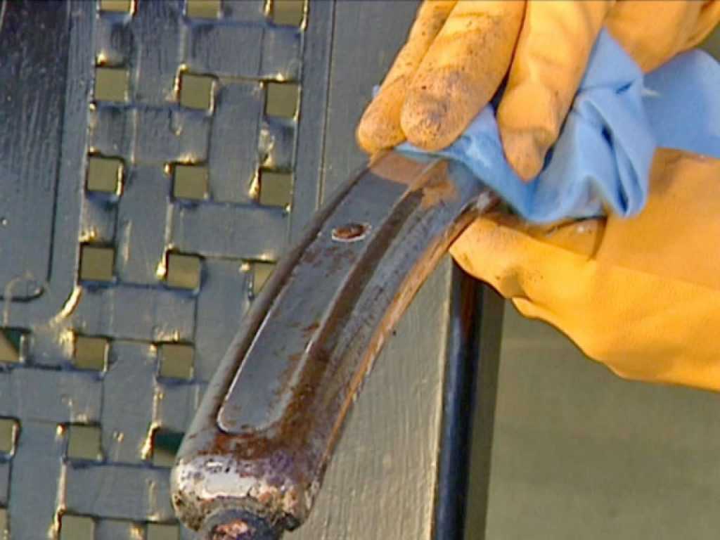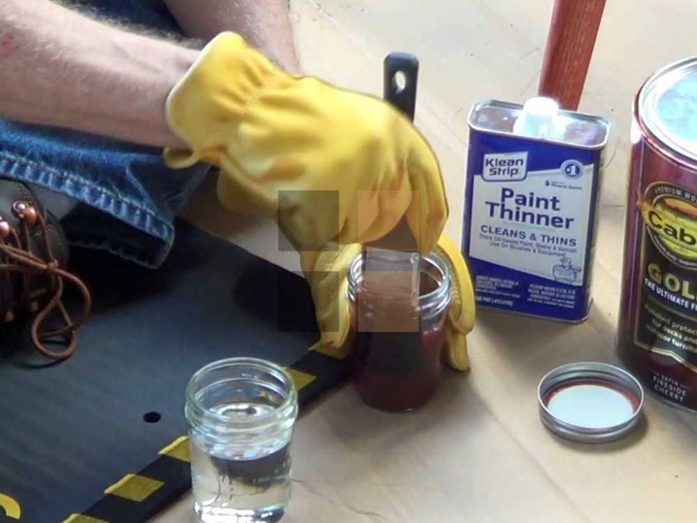 Химическая очистка. Удаление старой краски реактивами выполняют в хорошо проветриваемой комнате или на улице. Во время работы используют очки и перчатки. Химические растворы размягчают краску, которую потом соскребают шпателем и стирают ветошью.
