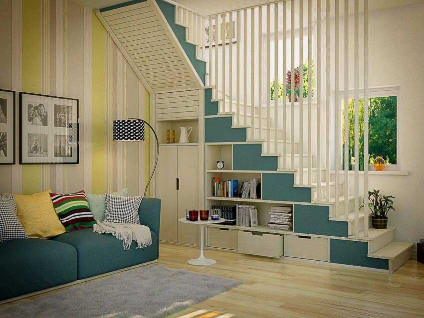 Если вы планируете реализовать эту идею, обязательно обратите внимание на строение самой лестницы: лестницы с подступенками (вертикальными элементами, перекрывающими зазор между двумя соседними ступеньками) лучше подходят именно для организации помещения во внутреннем пространстве лестницы