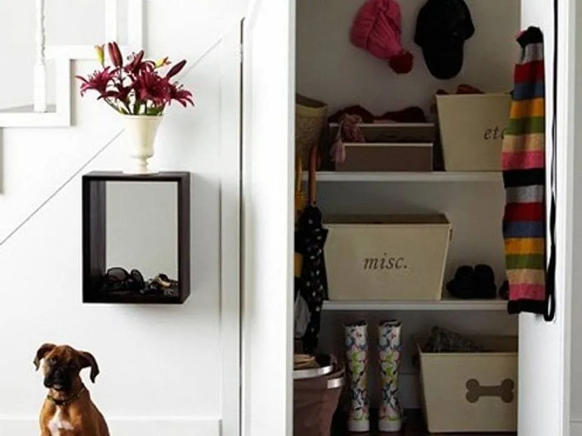 В прихожей или коридоре подлестничное пространство могут занимать: