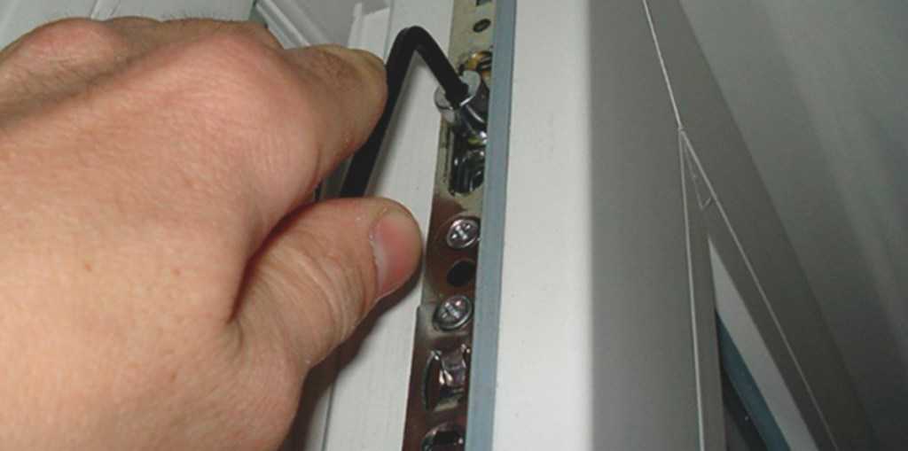 Если вы повесили сумку на ручку или увидели, как ребенок «катается» на створке — готовьте шестигранник и отвертку. После такого стресса створка просядет на петлях, сместившись относительно балконной коробки. К счастью, подобный дефект легко устраняется парой оборотов шестигранного ключа. Чтобы самостоятельно отрегулировать перекос, нужно: