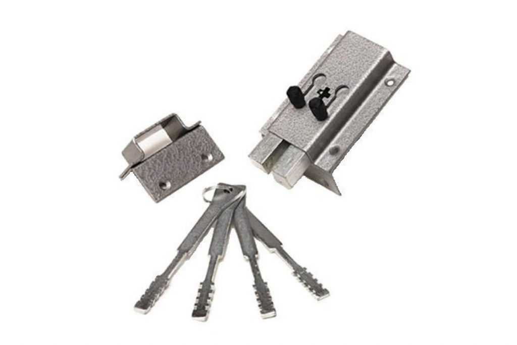 Крестообразные замки – широко применялись в советское время. Их другое название – «гаражные». Ригель отодвигается в теле врезной конструкции при установке в неё ключа с его последующим поворотом. Форма запирающего элемента на срезе представляет собой равносторонний крест.