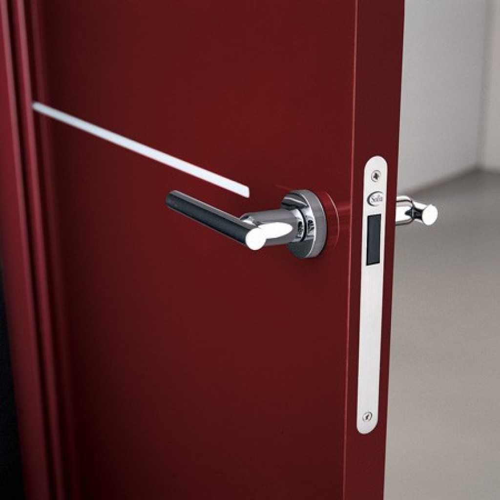 - Плюсы: возможность закрыться в помещении изнутри, надежнее и эстетичнее простой защёлки.