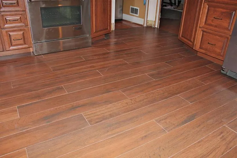 Для пола нет каких-то особенных требований. Можно использовать любое покрытие — линолеум, дерево, плитку. Желательно использовать укладку продолговатых элементов поперёк кухни, так она будет казаться более короткой.